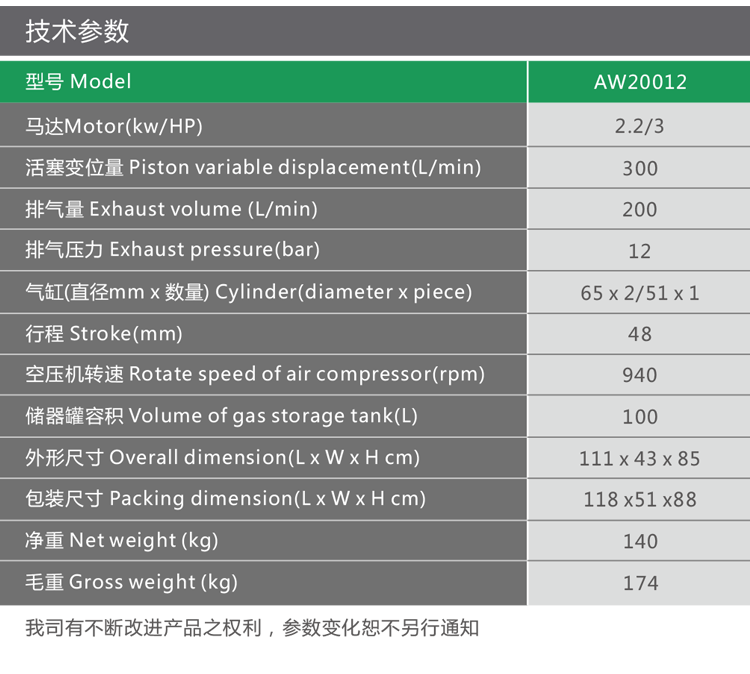 New energy saving and environmental protection AW20012 piston air compressor